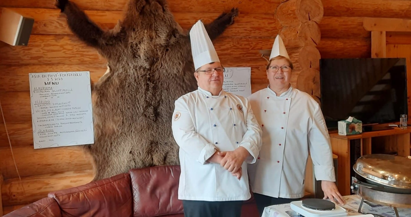 Mielellään annamme ruokapalvelujen toteuttamisen ammatimaisille yhteistyökumppaneillemme. Esko-isäntä loimuttaa lohta kodalla halutessanne. Leena-emäntä kattaa aamiaiset huvilalle tarvittaessa.